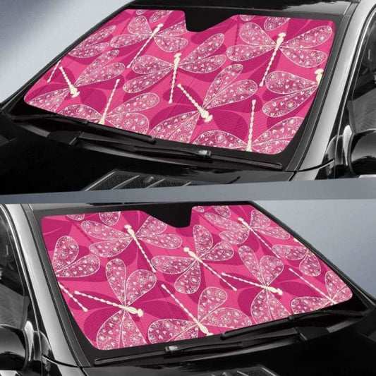 Beautiful Dragonfly Pink Background Car Auto Sun Shades