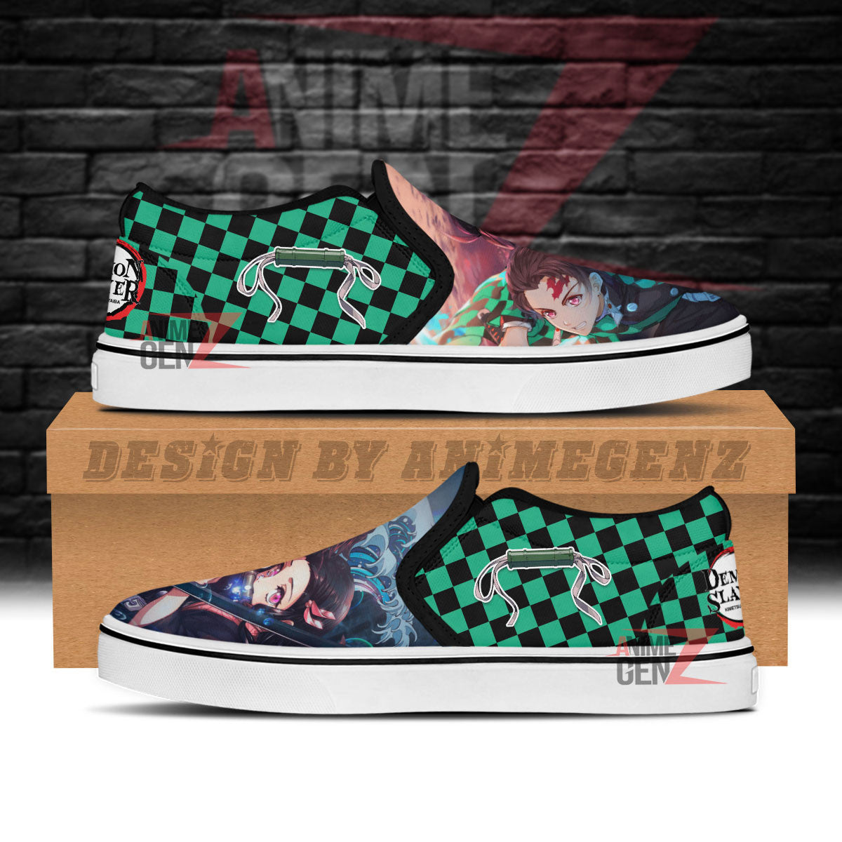 Demon Slayers Tanjiro Nezuko Slip-on Shoes Custom Anime Sneakers